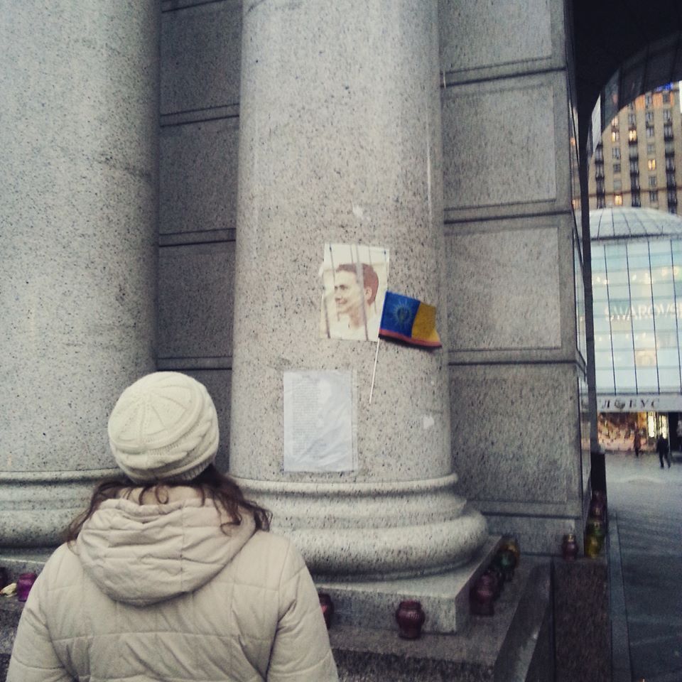 - Historia tego zdjęcia. Ania Woźniak z którą podróżowałem do Charkowa i dalej na wschód, dostała polecenie od przyjaciela z Kijowa – żołnierza Ukraińskiego stacjonującego w Mariopolu, żeby przekazać osobiście kwiaty dla jego dziewczyny w Charkowie. Miała urodziny, wzruszyła się. Spotkaliśmy się przy ruinach pomnika Lenina (zburzonego we wrześniu 2014) w centrum Charkowa.