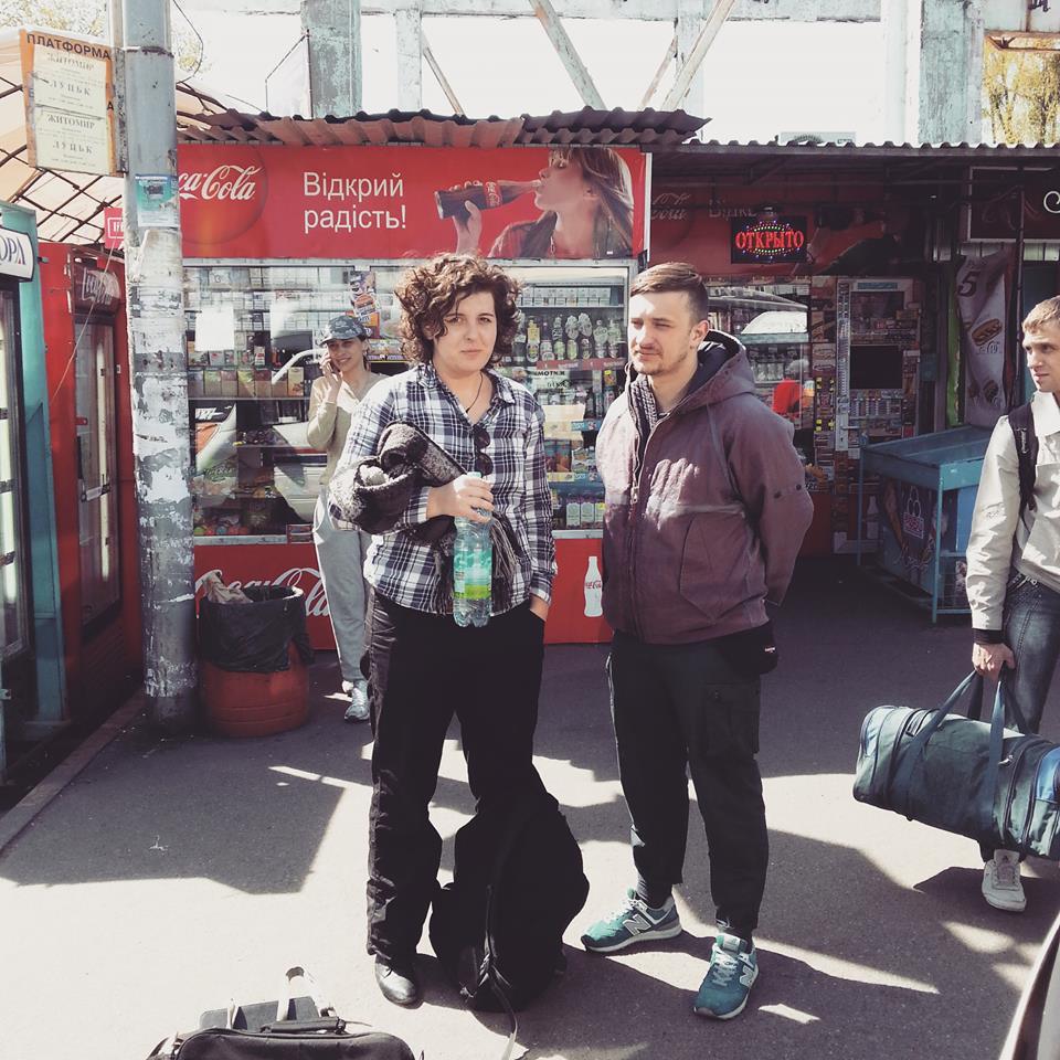 - Ania Woźniak z przyjacielem. Czekamy na transport z Kijowa do Charkowa.